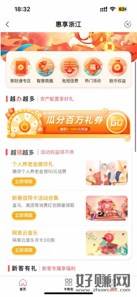 城市专区定位杭州->惠享浙江->3元买网易云月卡,自用或者挂平台卖