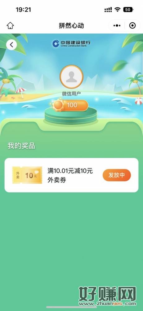 关注中国建设银行掌上网点,左一,进入游戏直接玩难度最高的,抽奖目前必得外卖券