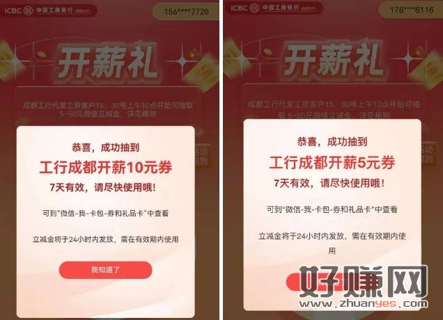 工行App - 搜“工银成都” - 精选活动“福利社”- “代发工资”- 开薪礼,去试试不必中