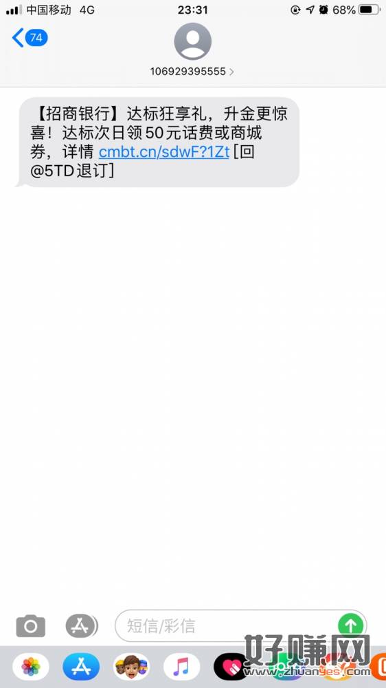 【招商银行】达标狂享礼,升金更惊喜!达标次日领50元话费或商城券,详情 cmbt.cn/sdwF?1Zt [回@5TD退订]