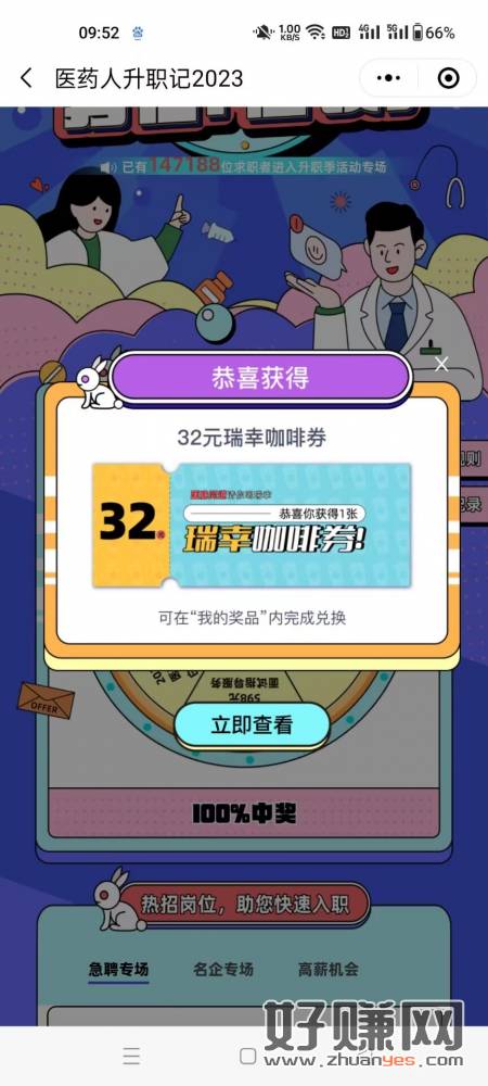小程序,医脉同道,不嫌麻烦的去随便完善下简历,抽奖32瑞幸或者50话费。多号多抽,