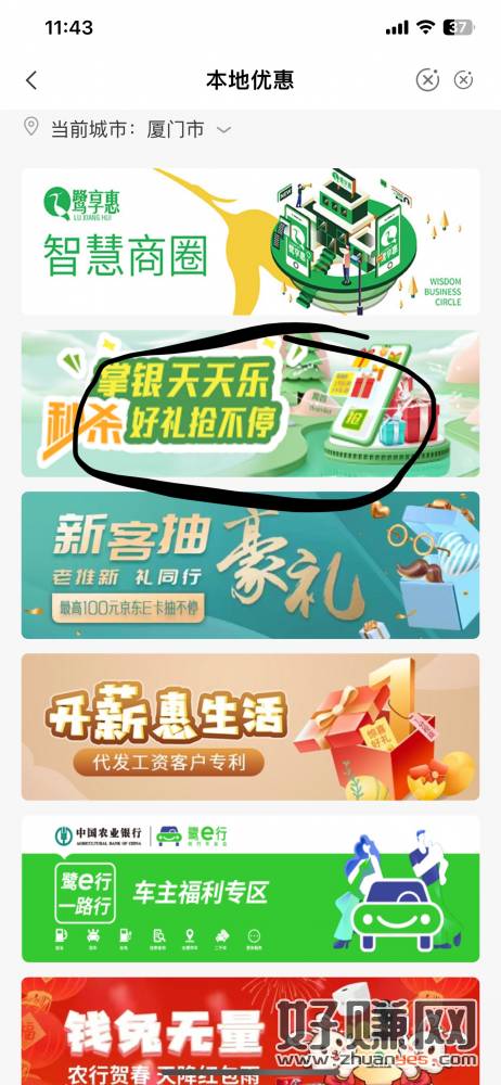 农业银行飞福建厦门本地优惠0.1买200积分换5e卡