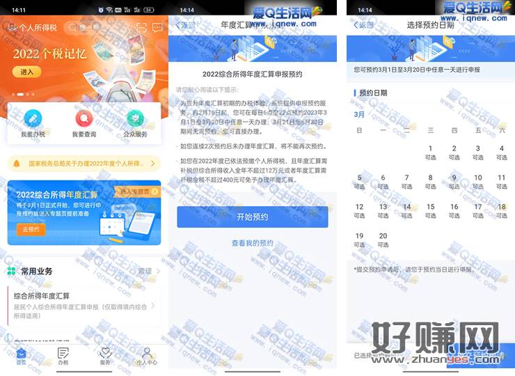 个人所得税APP-首页横幅年度汇算进入-预约3月1日-3月20日任意一天