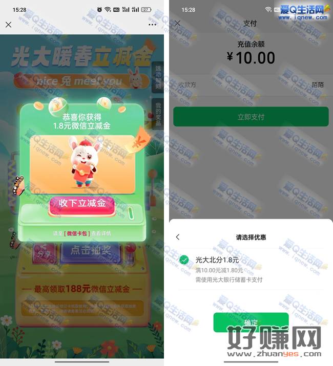 微信打开底部活动地址 玩游戏即可 亲测1.08 我是北京光大借记卡可以使用