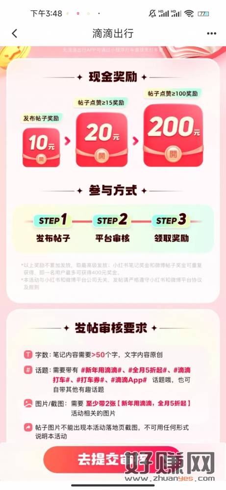 滴滴最新发帖,400大毛,首页点击5折起就可以看见