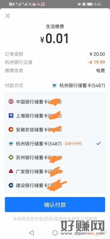 支付宝,绑的杭州直销银行的电子卡,刚随手
