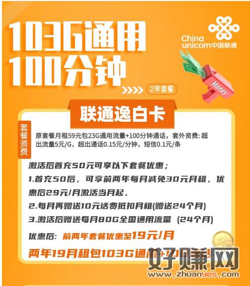 19元月租103G+100通话(2年套餐)