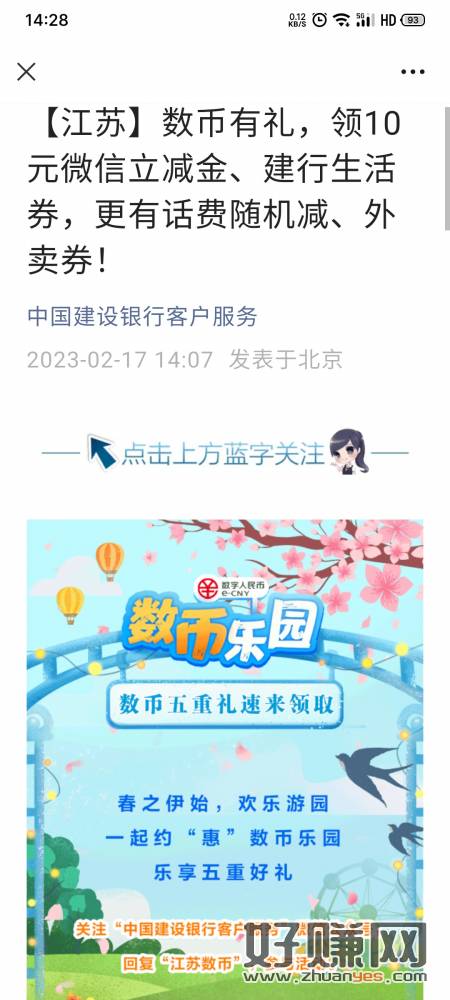 建设银行[ 江苏 ]数币有礼,领10元微信立减金、建行生活券,更
