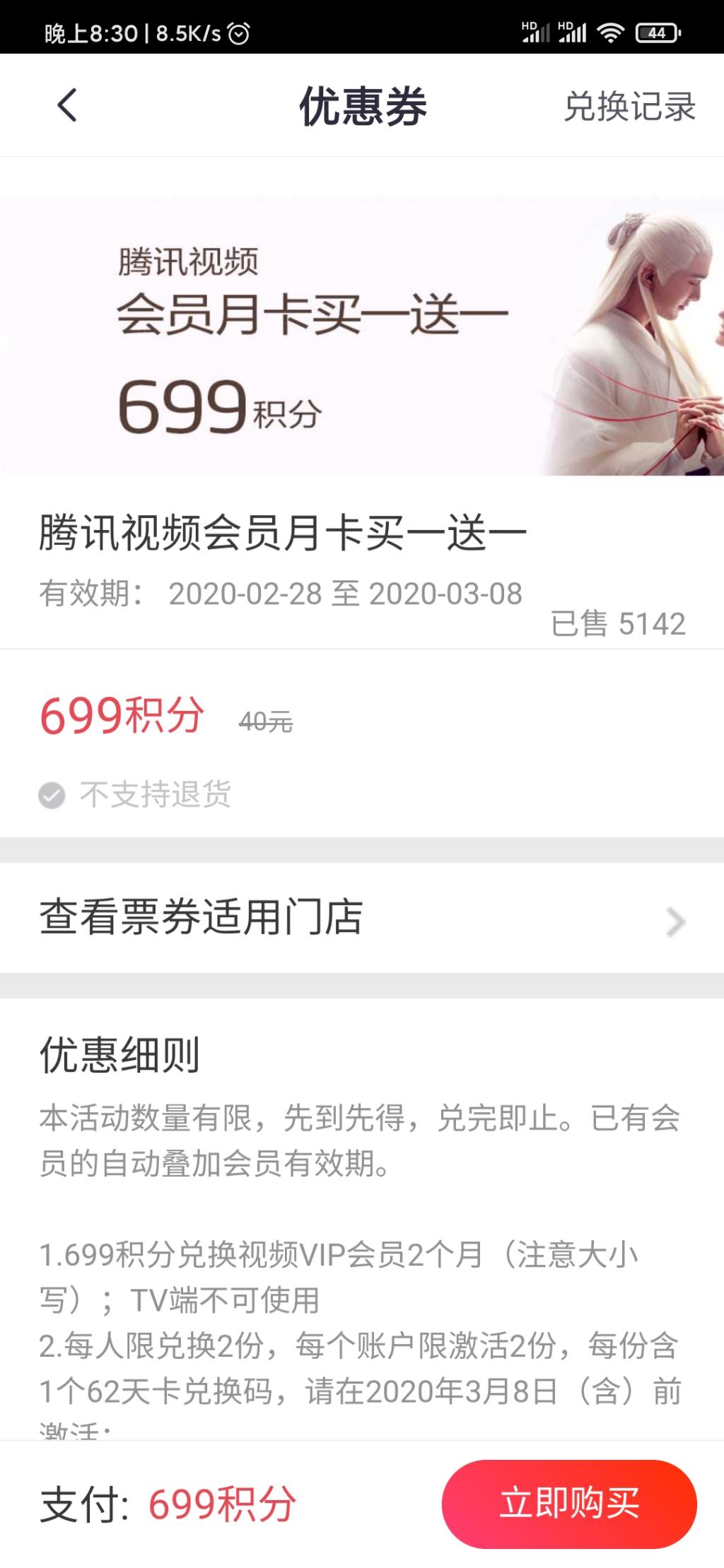 重大活动!!!掌上生活699积分兑换腾讯月卡买一送一,外面19无限收。