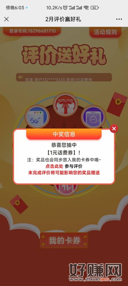 移动微信抽话费好礼