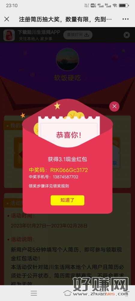 扫码填简历,尽量编的真一点,中奖截图,添加客服,复制给客服兑