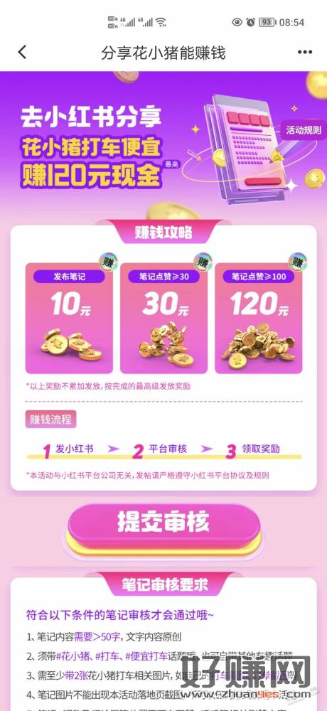 大致要求在小红书发50字原创文案、有APP截图、带要求话题