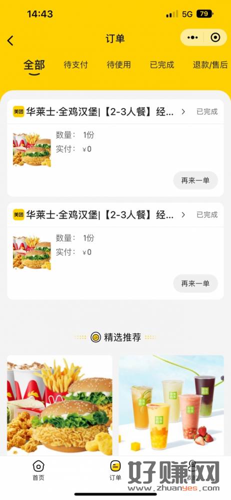 1元红包+美团兔单+鸡蛋卷