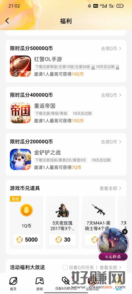QQ,动态,更多,游戏中心,点击右下角福利,下拉找到金铲铲之战,邀请人得Q币