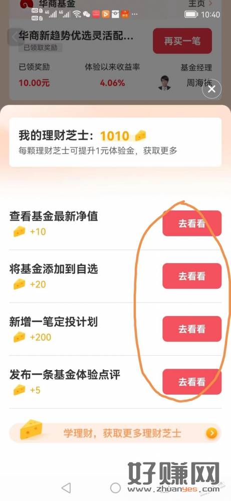 二是有个隐蔽的,点+进去,获取更多,挨个完成(定投的设置后就终止不要真定投),都有200多理财芝士。这个容易被忽视。