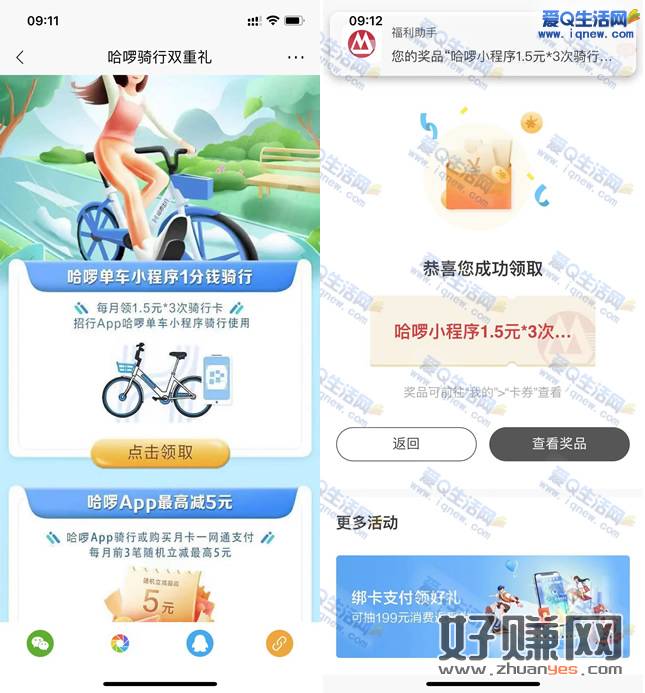 有招商银行的可以去参加一下这个活动哦,每月可以免费领取1.5元*3次骑行卡