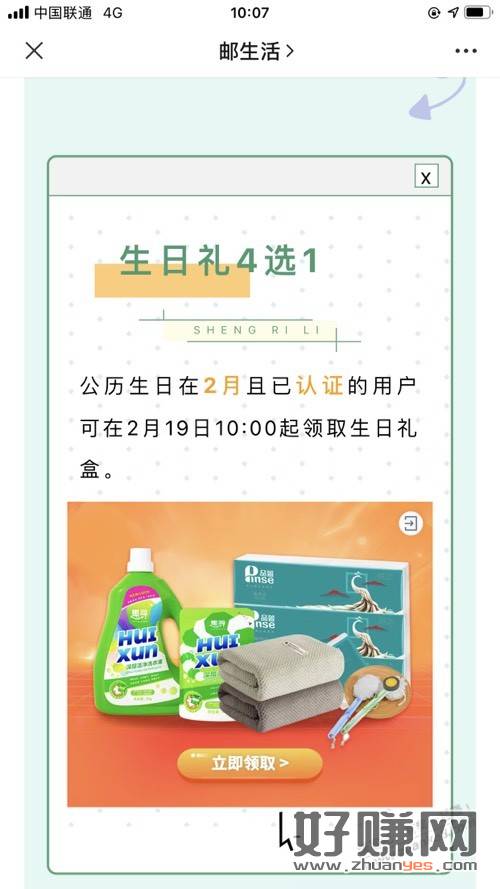 邮生活。数币和生日都可以领