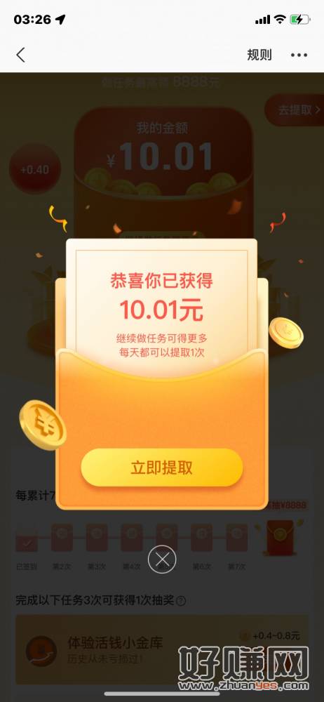 zfb搜索天天领现金1号10。做完任务去理财里面退就行秒进秒出