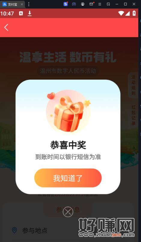 步骤:电脑下载雷电模拟器,下载上面app跟支付宝,搜索定位乐清市,别精准定位选旁边一点,不然提示未开放,然后上面app跳转过去就可以领了。