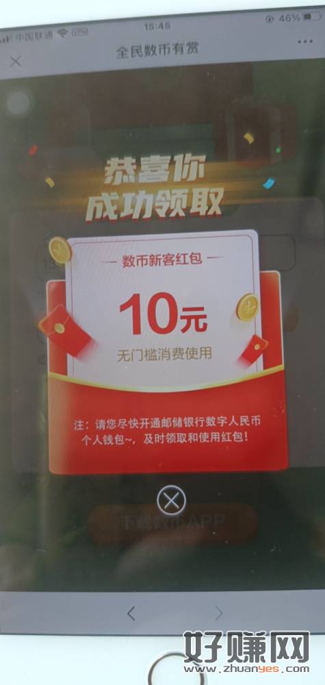 微信定位福州领取邮储通用数币10,注销不行,必须没开通过