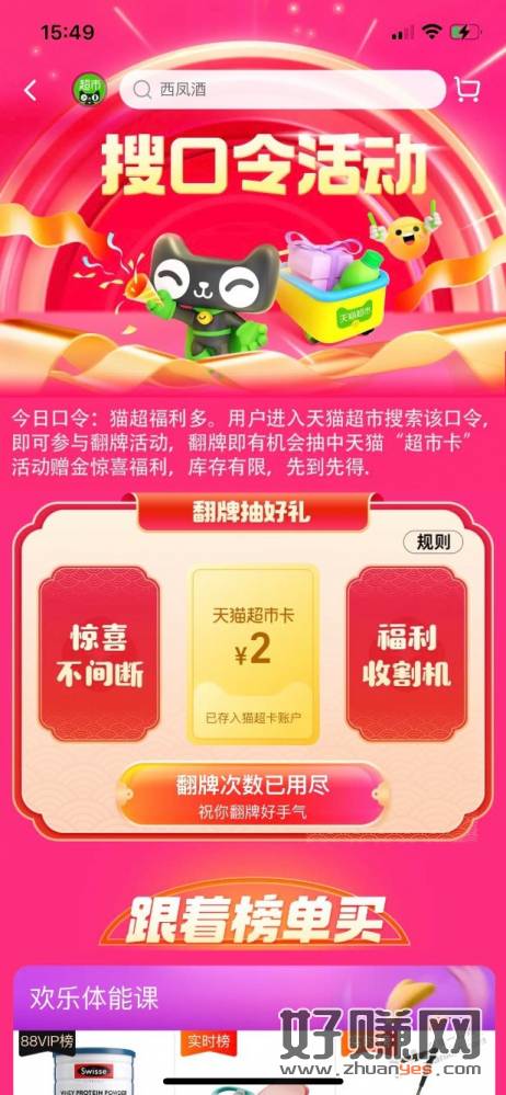天猫超市-搜索“猫超福利多”可获得翻牌抽奖机会