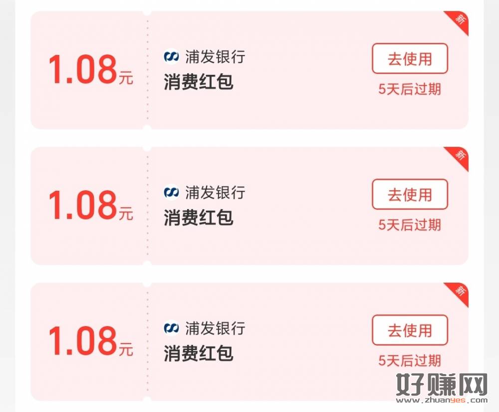 浦发银行APP 首页下拉 二月二龙抬头,3个1.08元