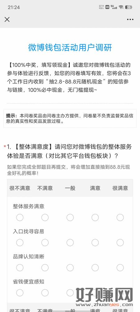 诚邀您参与微博钱包用户有奖调研,仅需一分钟即可完成,问卷填写完整必得2.8元-88.8元,100%无门槛提现,戳