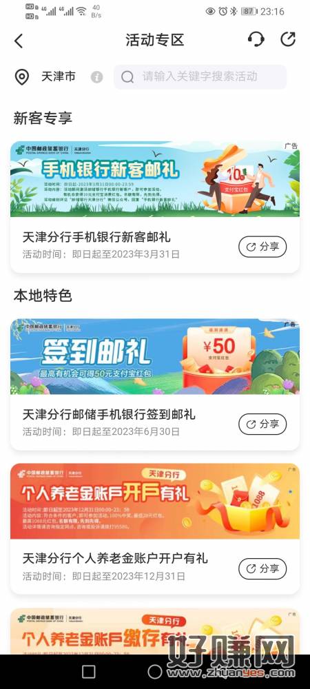 邮政飞天津没毕业的可以去撸,新客10支付宝立减,签到4天也可