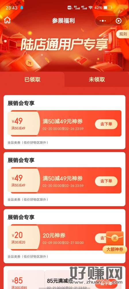 刚刚领了劵的现在去看看,50-49的劵,1撸实物,有些可能有两张劵,现在劵已经抢完了