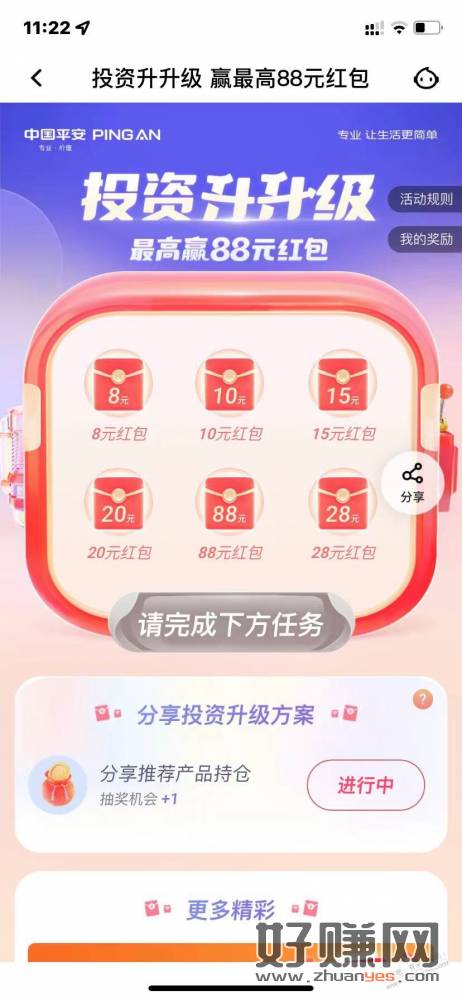 平安口袋,找投资升升级,投1000元7天,抽奖至少8元