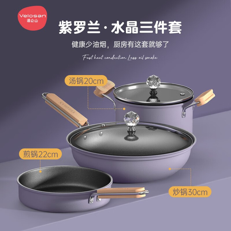 VELOSAN 紫罗兰锅具三件套装炒锅30cm+煎锅22cm+汤锅20cm