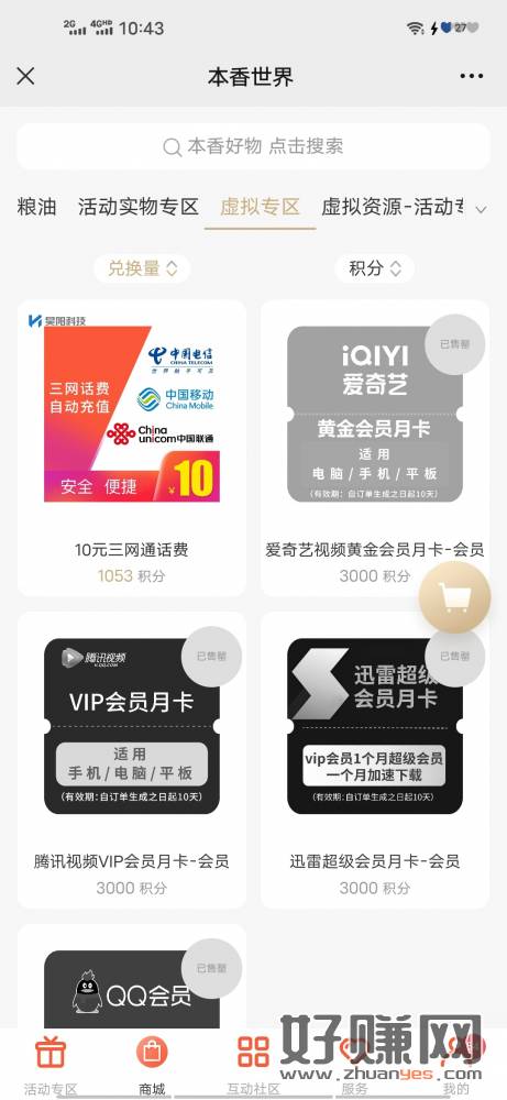 赶紧去了 本香公众号 有积分去看看 1000积分兑换三网通十