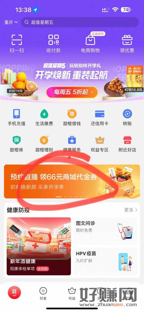 2点翼支付直播间蹲300-66券.