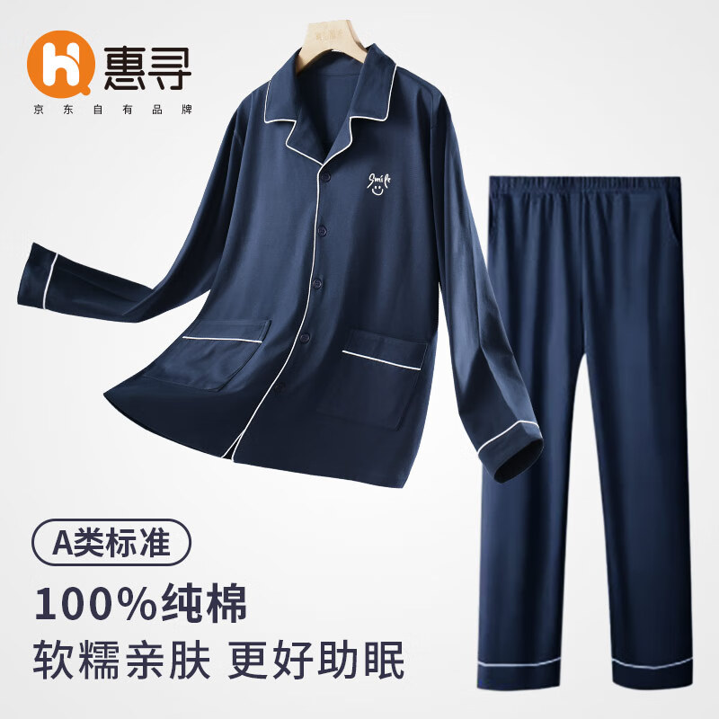 惠寻 A类纯棉男士翻领睡衣宽松家居服