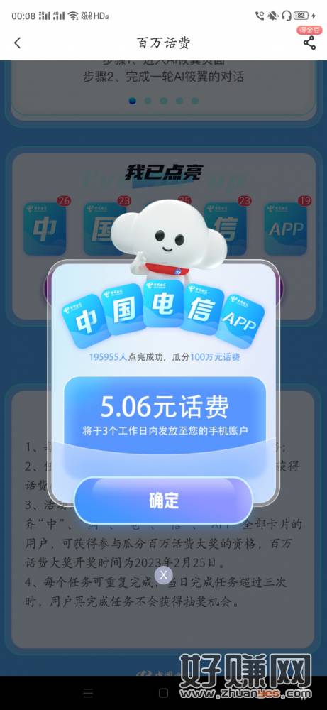中国电信那个集卡字得开奖了,看看你们分了多少?