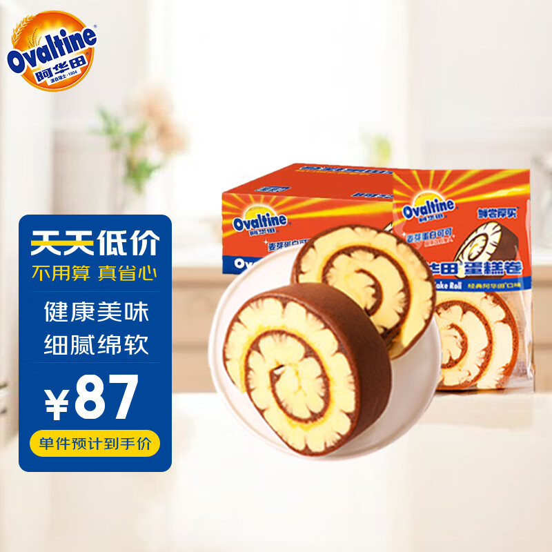 阿华田(Ovaltine)瑞士卷夹心蛋糕2kg整箱装