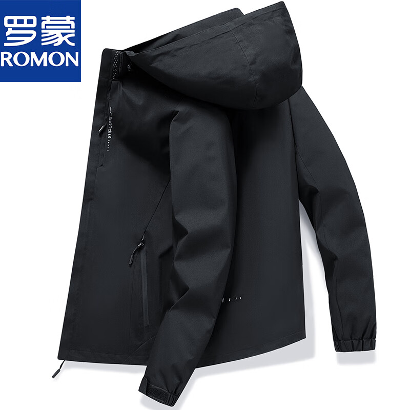 罗蒙(ROMON)男士休闲连帽冲锋衣,到手69亓