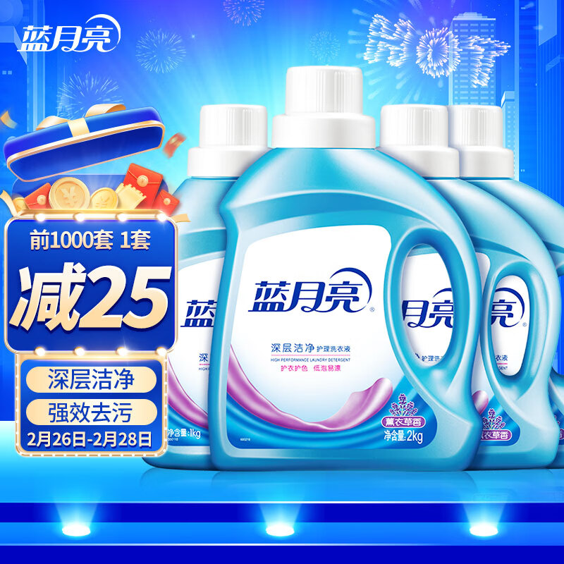 蓝月亮 薰衣草香洗衣液全瓶装2kg瓶+1kg瓶*3