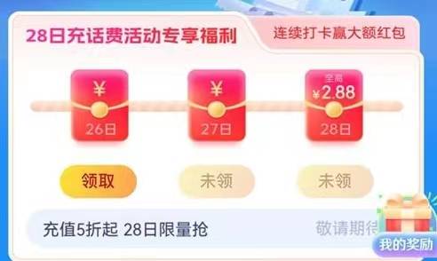 〖操作流程〗:联通APP->我的->我的钱包->联通支付日->每天签到抽随机话费券