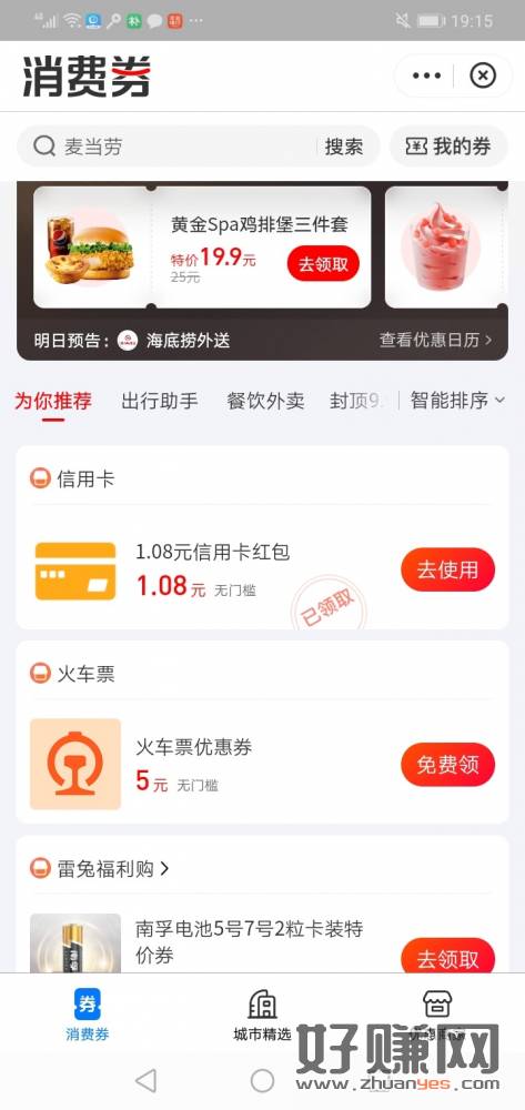 支付宝→消费券看有这个没,有信用卡的去