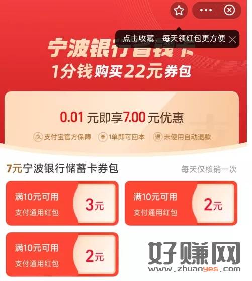 打开支付宝搜索“宁波银行省钱卡”进入活动页面