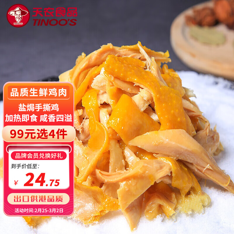 天农 盐焗手撕鸡500g熟食 供港品质鸡肉