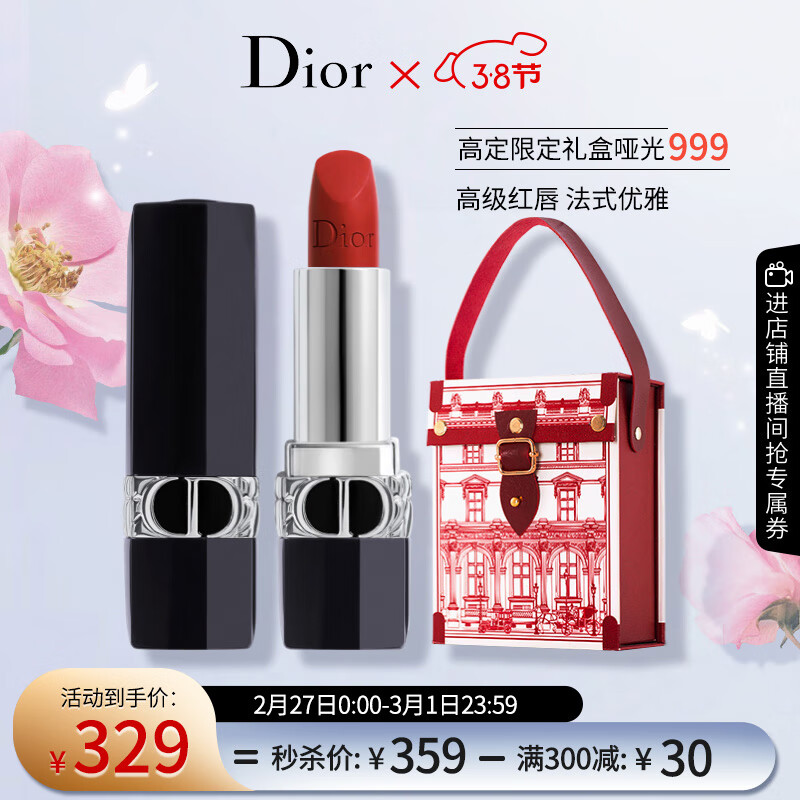 迪奥(Dior)烈艳蓝金哑光口红999正红 法式礼盒款