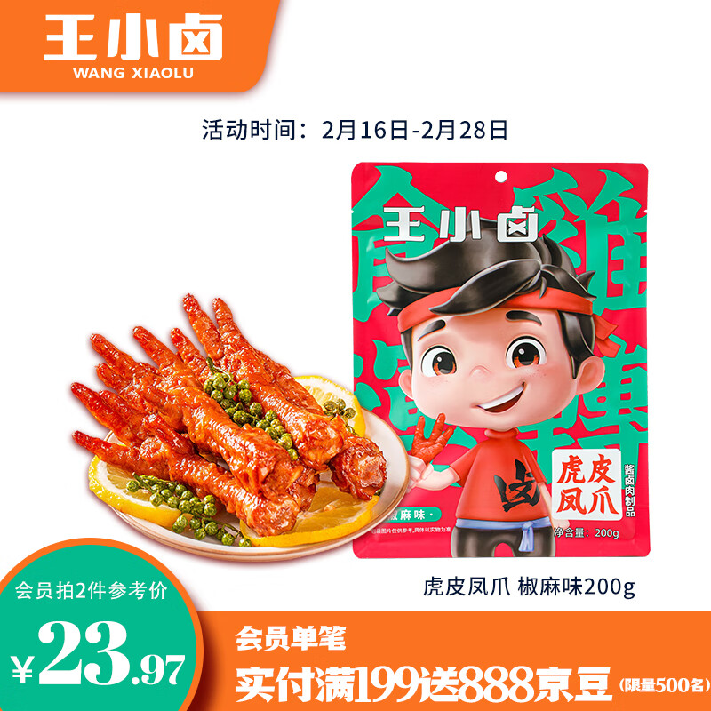 王小卤虎皮凤爪200g独立包装,微辣/卤香味/香辣味/椒麻