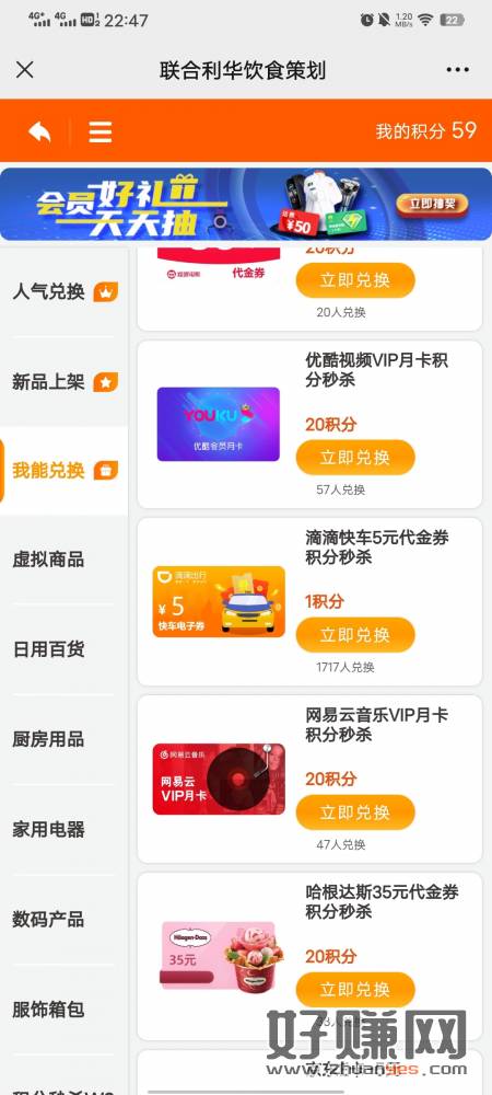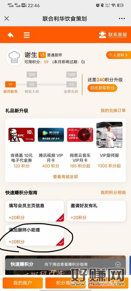 然后跟着步骤走,点击添加助理,一定要添加助理,不然我可兑换会空白,然后有积分点击积分换礼,可以领取5滴滴卡券(卡密),多V多薅。