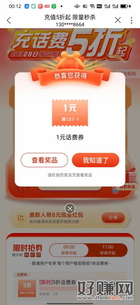 联通App顶上横幅半折那个活动抽奖。