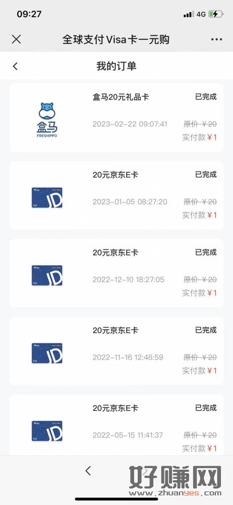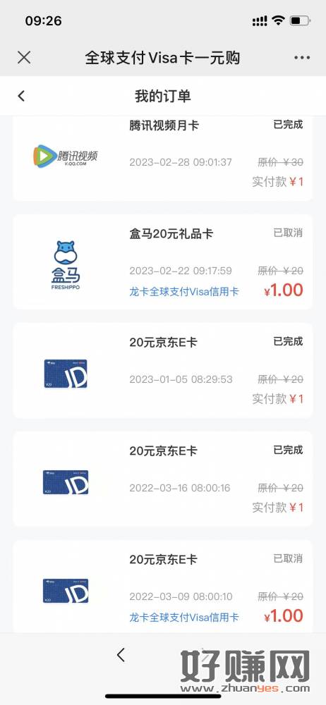 建行Visa卡一元购,本月最后一天,e卡盒马卡有货!!!