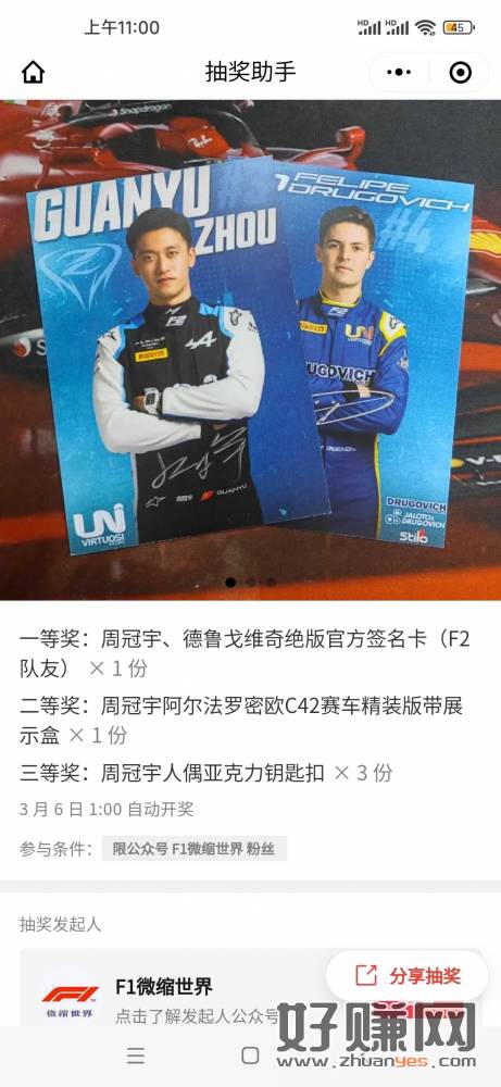 关注微信公众号【F1微缩世界】回复“2023” 参与抽奖 奖品:签名卡 汽车模型 开奖时间:3月6日