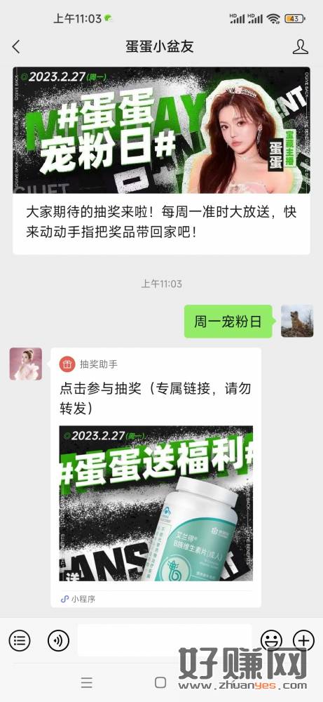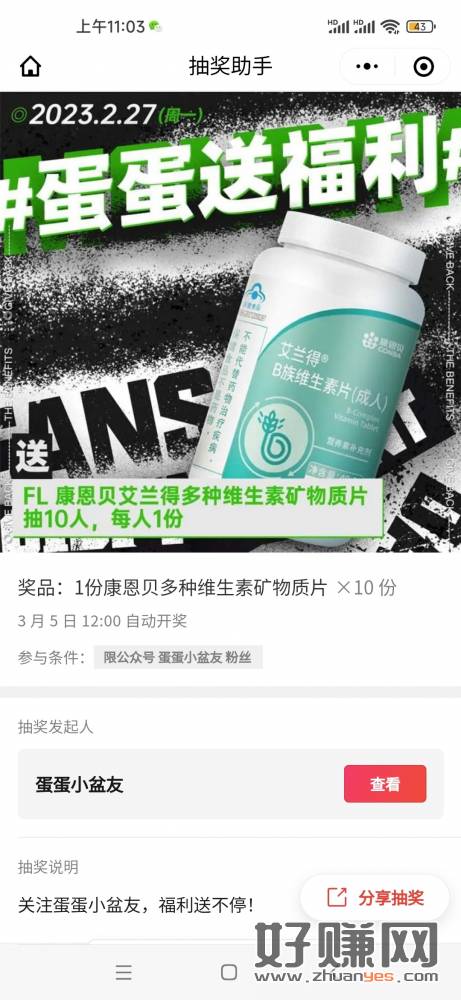 关注微信公众号【蛋蛋小盆友】回复“周一宠粉日” 参与抽奖 奖品:保健品 开奖时间:3月5日