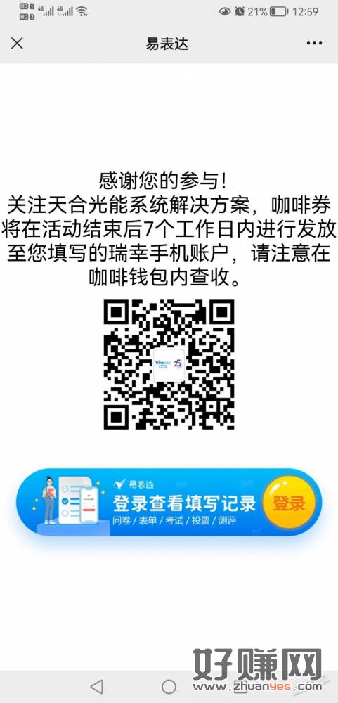 【天合光能答问卷领瑞幸23元券】微信关注公众号“天合光能系统解决方案”->再打开地址进入->简单答题领瑞幸咖啡23元通用券,券在3月18日之前发放